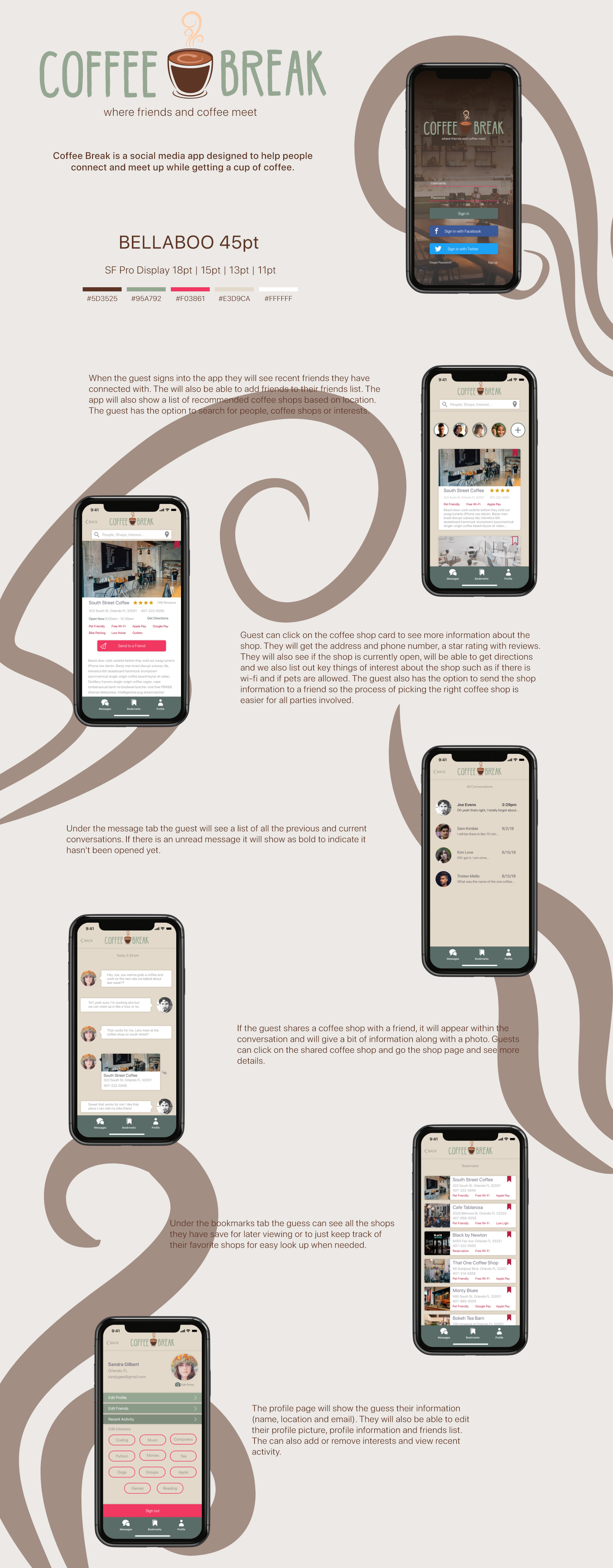 Coffee Break is a social media app designed to help people connect and meet up while getting a cup of coffee.